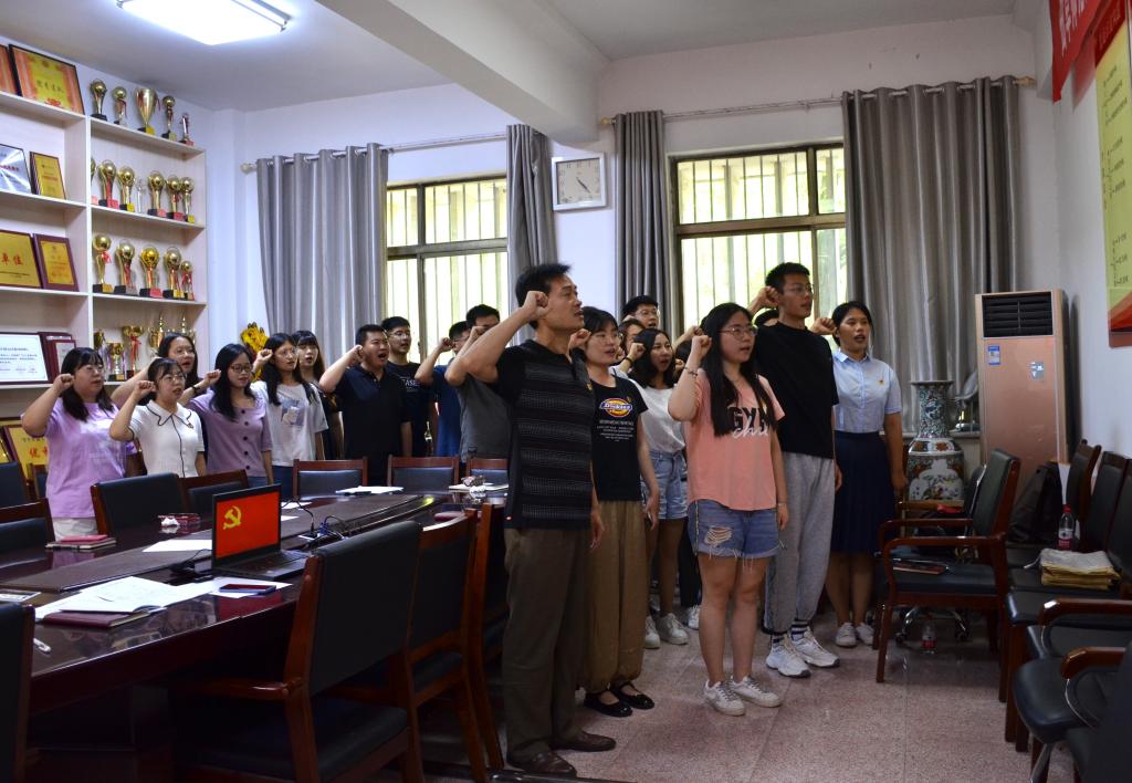 党支部书记孙锋同志向与会毕业生党员顺利毕业就业表示祝贺,对他们为足球直播515 事业发展所付出的努力表示感谢,并提出了殷切期望,希望他们不忘初心使命,进一步坚定政治信仰,努力做好本职工作;不忘拼搏进取,在未来的工作生活中,要保持昂扬向上的奋斗意志和积极乐观的心态;不忘母校情谊,常回家看看!最后,全体与会党员集体重温入党誓词,铿锵的声音使大家更加坚定了党员的政治责任和历史使命,坚定了永葆共产党员政治本色的初心。会后,全体与会党员合影留念。