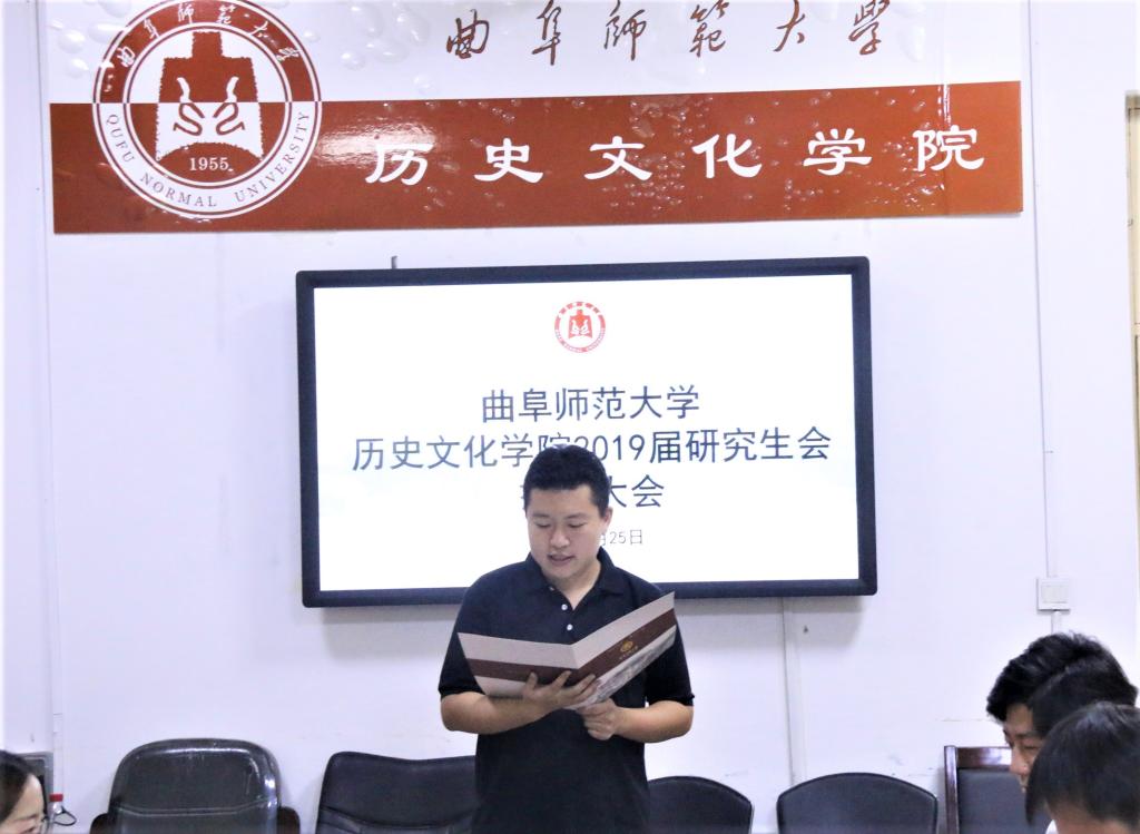 9月25日下午,足球直播515官网 2019届研究生会换届大会在文史楼204室举行成功举办。研究生处副处长徐璐、研究生处王旖旎、足球直播515 党委副书记王建阳、副院长吕厚轩、研究生辅导员孙锋、教务助理王法强老师、研究生会主席刘浩、研究生团工委副书记王慧敏、曲阜校区各足球直播515 研究生会主席出席了此次会议,足球直播515 研究生会全体成员参加了此次大会。会议由足球直播515 2019届研究生会主席申潜主持。