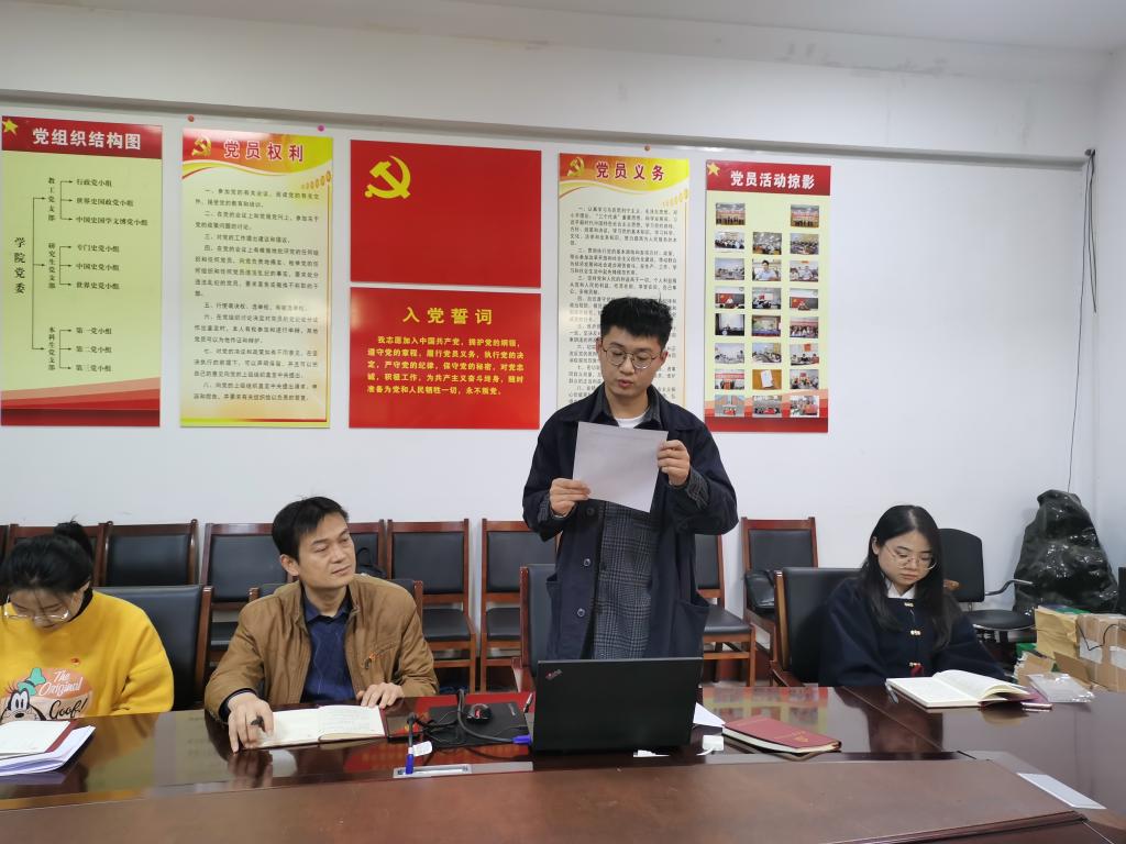 此次会议由党支部书记孙锋同志主持,孙锋书记对徐丽砚同志和赵璐同志的加入表示欢迎,对新一届支部的工作提出要求,希望全体党员同志继续支持支部工作,加强理论学习,发挥党员的模范带头作用,齐心协力,为把研究生支部打造成我校样板党支部而努力!