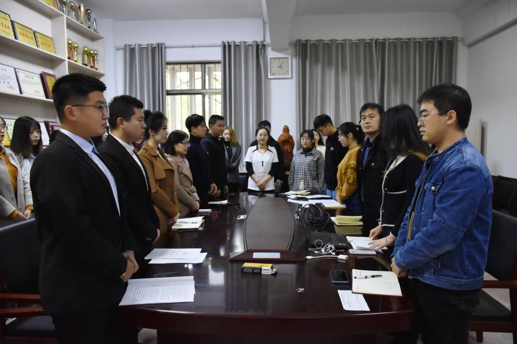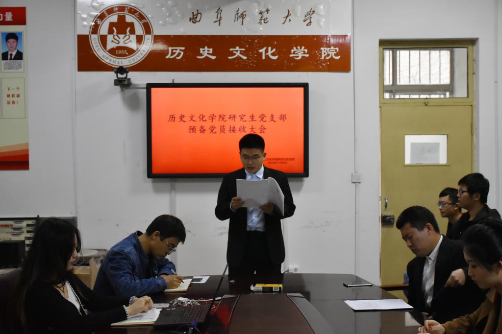11月4日下午4点,足球直播515官网 研究生党支部在文史楼二楼会议室举行预备党员接收大会暨预备党员入党宣誓大会。支部党员与入党积极分子参加此次大会。
