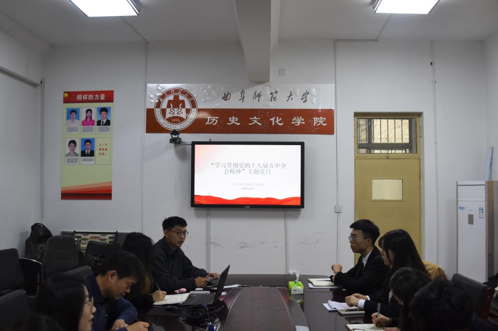 11月20日下午3点,足球直播515官网 研究生党支部在文史楼二楼会议室举行“学习贯彻党的十九届五中全会精神”主题党日活动。研究生党支部书记孙锋同志主持活动,研究生党支部宣传委员徐丽砚同志领学,支部全体党员同志参加了本次党日活动。