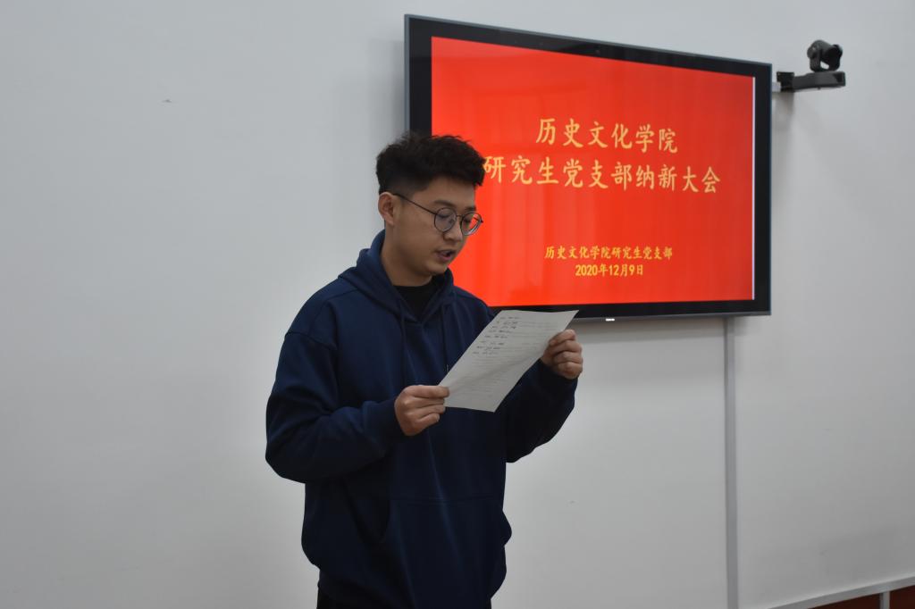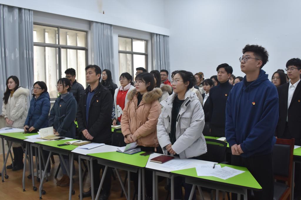 12月9日下午,足球直播515官网 研究生党支部预备党员纳新大会在文史楼505会议室召开,支部党员与入党积极分子参加此次大会。大会在雄壮的国际歌声中拉开帷幕。