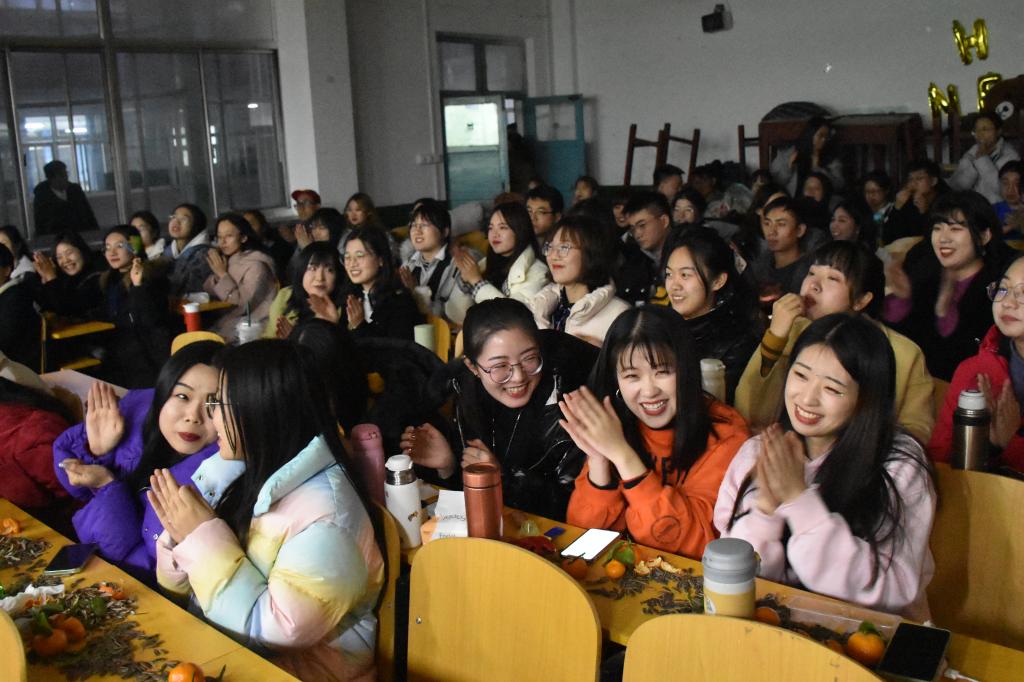 当晚,孙锋、王法强、闫浩、谢经虎、韩锋、张俊成、王静等老师出席晚会。晚会共有来自足球直播515 研究生精心准备的12个节目,采取线下与线上相结合的方式,内容丰富多样。进场时,师生需经过体温检测。随着强劲的鼓声响起,晚会在激情动感的开场舞《Wannabe Milk》中拉开了帷幕。一首吉他弹唱《我就静静的看着你学习》,带我们回忆了初见曲园的记忆。诗朗诵《木铎振声,齐颂六五》为曲园送上最真挚的生日祝福,令人动容。相声节目《论捧逗》令人捧腹,接下来,歌曲《阿刁》婉转悠扬、《多想在平庸的生活拥抱你》深情款款、《大鱼》余韵悠长、说唱歌曲《烈火战马》表达了拳拳爱国心。“击鼓传花”的游戏环节中,同学们踊跃参加,进行自我介绍或才艺展示,并为观众送上了新年祝福,谢经虎老师献唱的《明天你是否依然爱我》,赢得了满场的掌声。2019级研究生会学生干部带来的歌舞《乘风破浪的哥哥姐姐们》反转不断,观众们掌声连连,晚会在大家的欢笑声中落下帷幕。