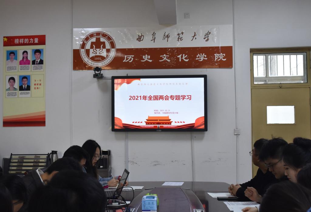 3月22日下午,足球直播515官网 研究生党支部在文史楼二楼会议室开展“学习2021年全国两会精神”主题党日活动。研究生党支部书记孙锋同志主持活动,由2018级党小组组长尤旭星同志领学,全体党员同志参加了本次党日活动。