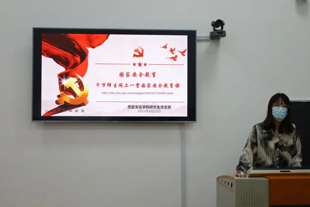 4月23日,足球直播515官网 研究生党员和学生干部在文史楼五楼会议室集中观看了“千万师生同上一堂国家安全教育课”主题公开课,由山东大学薛冰老师、北京大学赵冠英老师、腾讯守护者计划张文涛老师、北京师范大学学生刘懿莹联合分享,共话国家安全,共同感悟新时代国家安全成就。