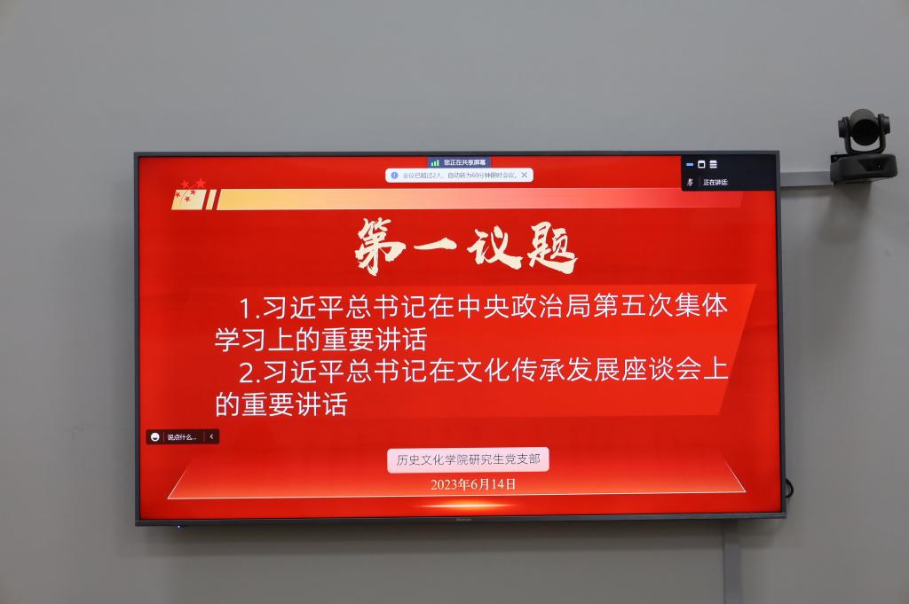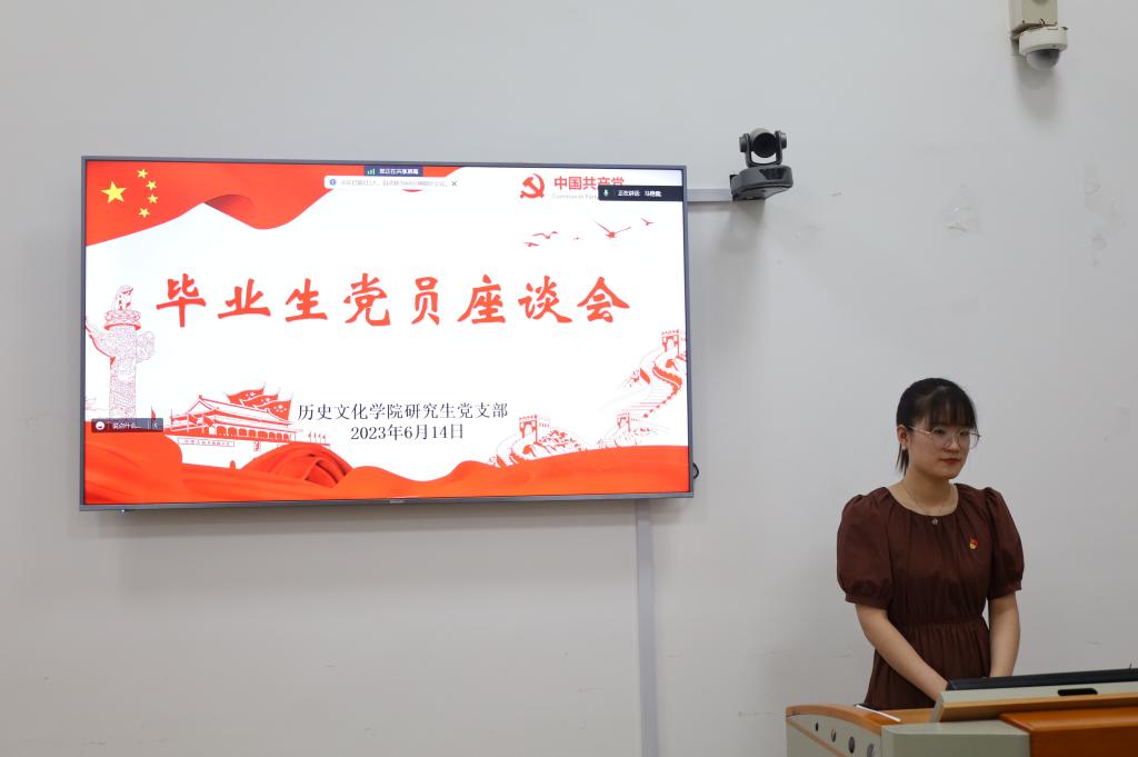 2023年6月14日下午,足球直播515官网 研究生党支部在文史楼505会议室召开毕业生党员座谈会主题党日活动暨学习贯彻习近平新时代中国特色社会主义思想主题教育第三次集中学习研讨。部分不在校党员以腾讯会议形式线上参会。会议由组织委员马艳霞主持。