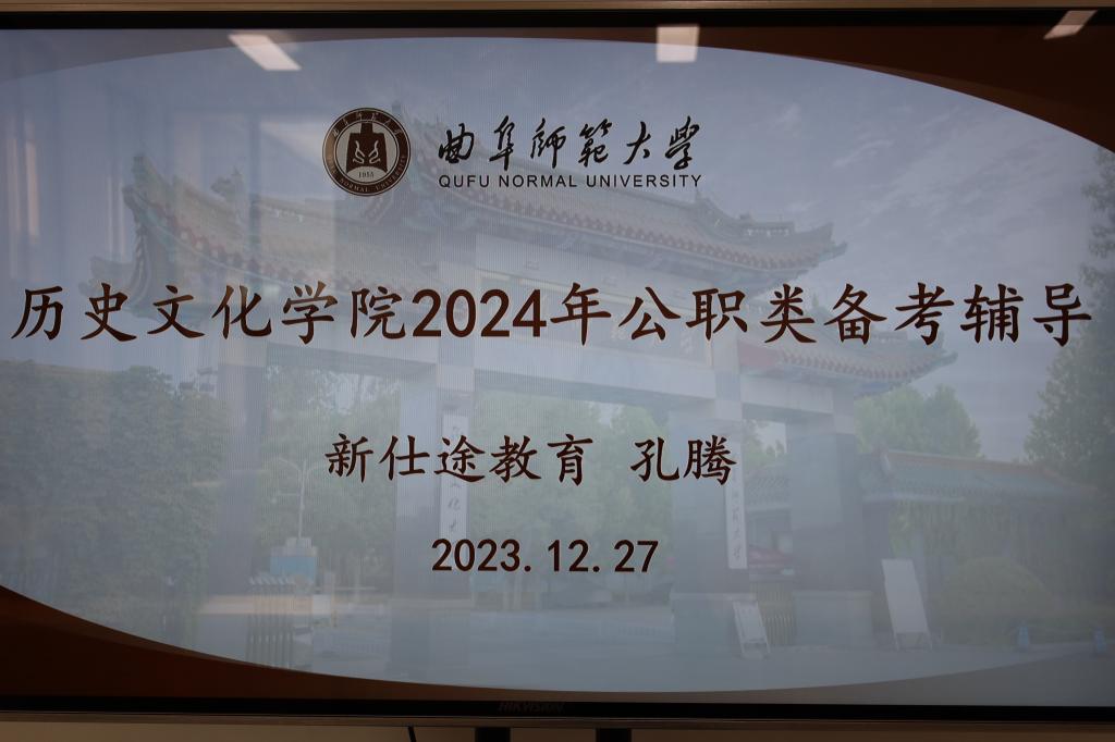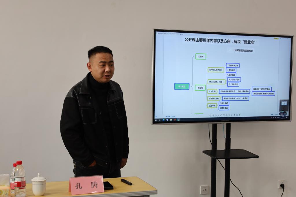 2023年12月27日下午,足球直播515官网 于孔子足球直播515 B106举行2024年公职类备考辅导公开课,本次讲座邀请了新仕途教育曲阜校区校长孔腾老师主讲。足球直播515官网 研究生积极参与,讲座由足球直播515官网 研究生会主席李昂主持。