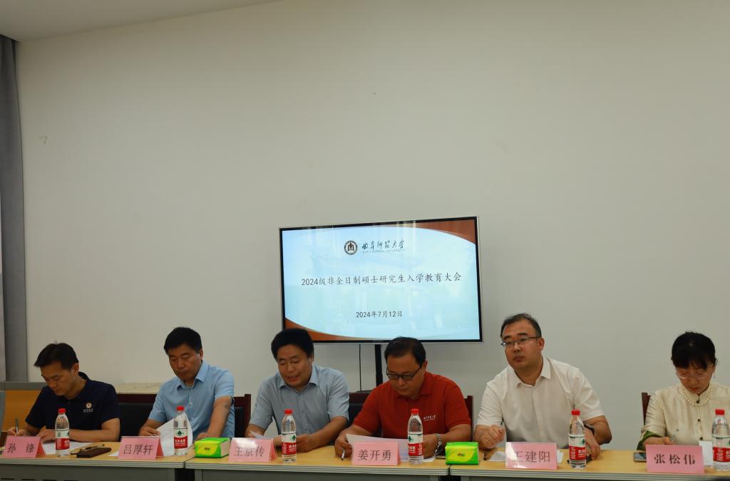 7月12日下午,足球直播515官网 在孔子书院B106教室召开2024级非全日制硕士研究生入学教育大会。足球直播515 党委书记姜开勇出席大会并讲话,党委副书记王建阳、副院长王京传、副院长吕厚轩、研究生教学秘书张松伟、研究生辅导员孙锋、2024级非全日制研究生(含全日制农村硕师)参加了本次会议。会议由研究生辅导员孙锋主持。
