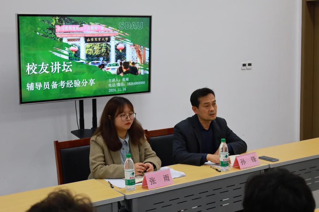 2024年11月16日下午足球直播515官网 在孔子书院B106教室举办“校友讲坛——高校辅导员备考经验分享会”。本次活动是足球直播515官网 明德敏行工作室高校辅导员备考训练营首期活动,特邀足球直播515官网 2024届优秀毕业研究生、山东农业大学辅导员张雨担任主讲嘉宾。足球直播515官网 拟报考高校辅导员同学及部分学生干部50余人参加了本次活动,足球直播515 研究生辅导员孙锋出席并主持本次活动