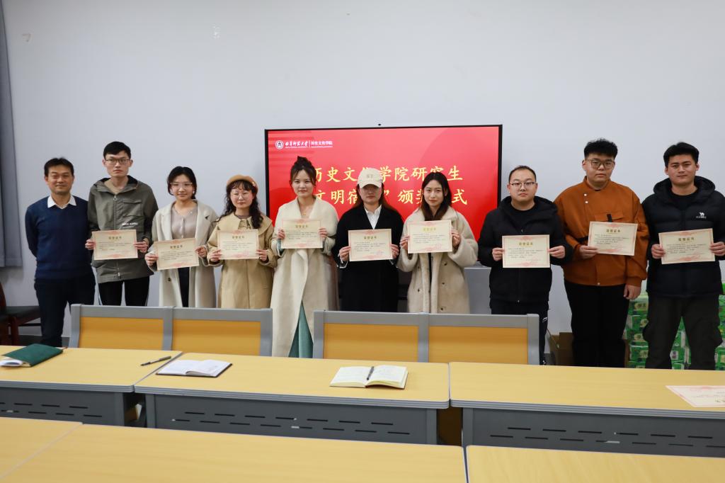 会议首先公布了2024年秋季学期文明宿舍评选结果。经综合考评,共有10个宿舍凭借着整洁的卫生环境、规范的安全管理荣获“文明宿舍”称号。孙锋为获奖宿舍代表颁发荣誉证书及奖品,并高度评价其在宿舍建设中的示范作用。他表示,文明宿舍是集体凝聚力与责任意识的体现,希望全体同学以先进为榜样,共同打造安全、舒适、温暖的住宿环境。