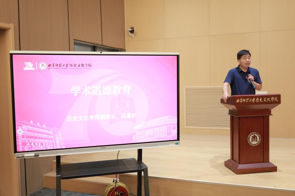 王建阳首先介绍了与会院领导与教师,并对新生的到来表示热烈欢迎。姜开勇致欢迎辞,围绕理想信念展开讲话,勉励新生树立远大目标,坚定学术追求,胸怀家国天下。王京传系统介绍了足球直播515 的发展历程、学科建设与师资力量,增强了新生对校史院情的了解与认同。吕厚轩就研究生培养方案与学术道德规范进行说明,强调科研诚信与学术规范的重要性。王建阳针对研究生日常管理及安全教育提出具体要求,为新生顺利适应校园生活提供指导。