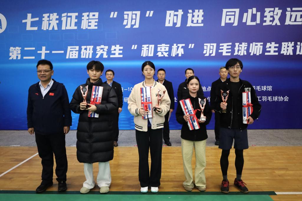 本次比赛以师生联谊的混合团体赛形式开展,包括“男双、女双、混双”等项目。足球直播515官网 参赛队员在赛场上奋发拼搏,团结一致,以饱满的热情和积极的心态投入本次比赛。场内队员技艺精湛,在赛场上灵活运用各种战术,将羽毛球运动的速度与激情展现得淋漓尽致,也让现场观众切身感受到了羽毛球的魅力,充分展现了足球直播515官网 师生们奋发拼搏、积极向上的精神面貌。经过激烈角逐,足球直播515官网 最终获得学校第二十一届研究生“和衷杯”羽毛球师生联谊赛第五名三等奖的优异成绩。