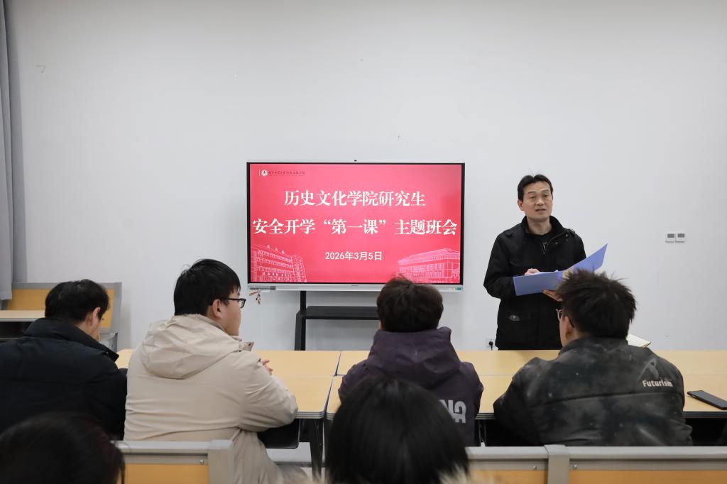 为筑牢校园安全防线,保障新学期各项工作平稳有序开展,2026年3月5日下午,足球直播515官网 在孔子书院B106教室成功举办研究生安全开学“第一课”主题班会。本次主题班会由研究生辅导员孙锋主讲,全体研究生参与。