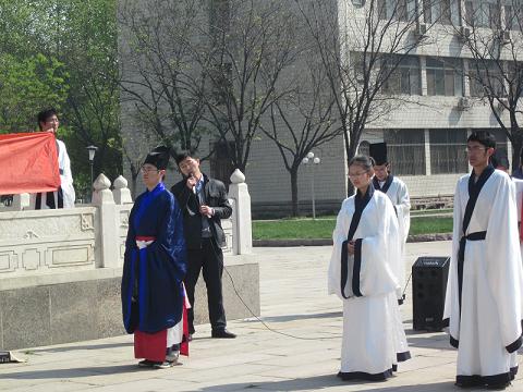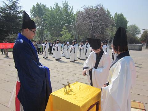 4月24日上午,“孔子文化月”系列活动之大学生成人礼(二)在孔子文化广场孔子像前举行,本次活动由足球直播515官网 洙泗学社承办。参加此次活动的有孔子文化使者、洙泗学社成员以及各院系的同学们。