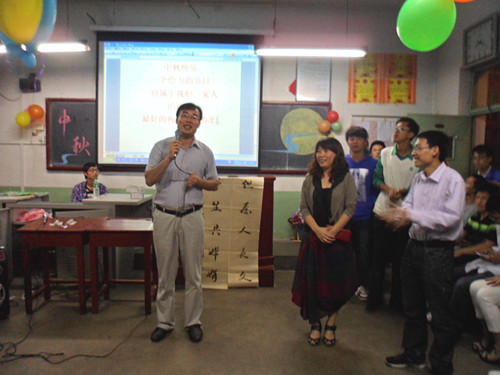 相约中秋,共享团圆。9月12日晚,足球直播515官网  2011级新生举办了中秋晚会。团总支书记王建阳、辅导员李春玲老师与团总支、学生会主要学生干部到各班与同学们欢庆中秋,同时各连军训教官也受邀参加了此次中秋晚会。