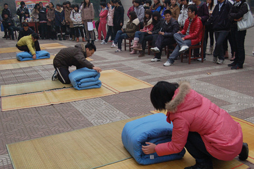 10月27日上午,由足球直播515官网 学生会宿管部主办的叠被子大赛在文史楼前热闹开场。