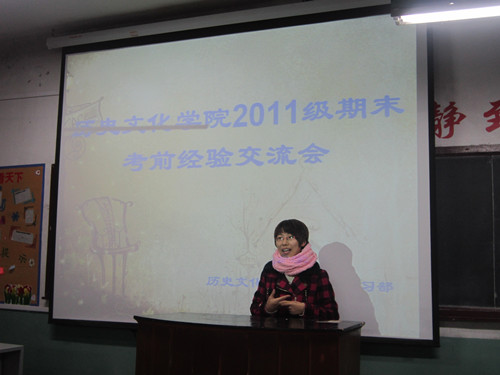 交流会共分为两个环节,经验交流和自由提问。经验交流环节是由2010级的同学们就国际政治和历史学专业的复习方法、考试题型、答题技巧这几方面的问题向2011级同学们讲解,同时他们也详细介绍了素质拓展、综合测评、奖学金等相关内容。在自由提问环节中2010级的同学耐心详细的讲解了有关英语学习技巧、计算机考试等问题。最后本次交流会在同学们的掌声中结束。