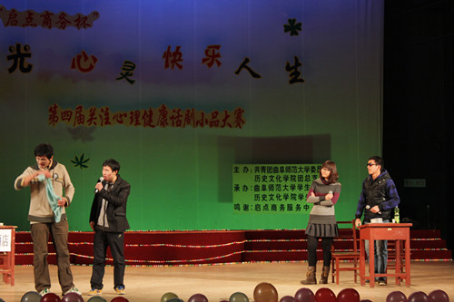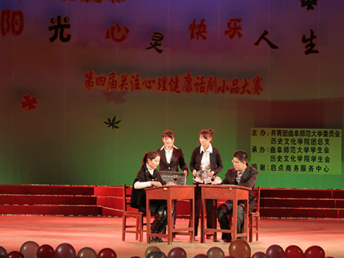 12月11日晚,第四届关注心理健康话剧小品大赛在新大学生活动中心礼堂拉开帷幕。本次活动由共青团曲阜师范大学委员会、足球直播515官网 团总支联合主办,校学生会及足球直播515官网 学生会共同承办。教育科学足球直播515 副院长唐爱民、党委学生工作部教育科科长毛永正、文足球直播515 老师袁梅、足球直播515官网 党总支副书记尹明法及韩锋、吕厚轩、李春玲老师应邀担任此次大赛评委。