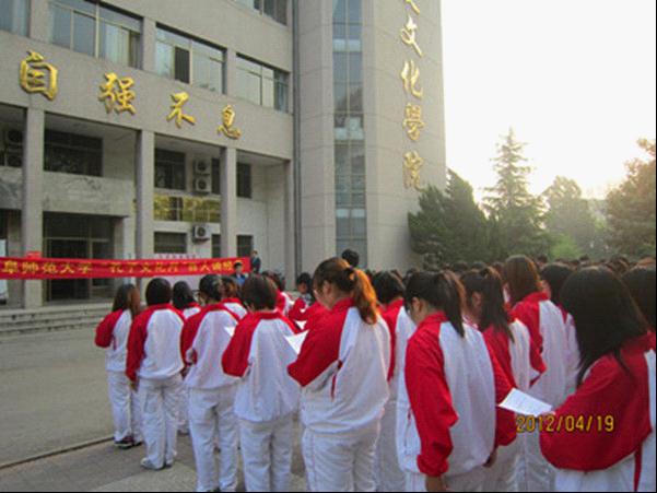 晨光熹微,春日灿灿,莘莘学子,恭颂经典。4月19日早,由洙泗学社和论语研修学社承办的“百人诵经典”活动在足球直播515官网 同学们齐声诵读中展开。“百人诵经典”活动选取《论语》、《大学》中经典篇章,旨在使同学们重温圣人话语,品味经典精髓,加深同学们对先师孔子宝贵精神的理解。朗朗的诵读声在朝阳的照射下传向曲园的四面八方,引来行人驻足观赏。