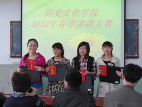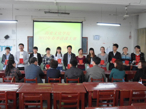 四月芳菲,春意盎然,为展现足球直播515官网 学子授课风采,并锻炼同学们的从师技能,4月21日,足球直播515官网 一年一度的春季讲课大赛如约在文史楼411室和405室拉开帷幕。来自足球直播515官网 2009级本科生和研究生共24名选手参加了本次讲课大赛,足球直播515官网 退休老教师杨荫楼教授、党总支书记尹明法、副院长郝承敦、副院长李建、刘伟副教授、王昌沛副教授、吕厚轩副教授、辅导员李春玲等十四位老师应邀担任此次讲课大赛的评委。