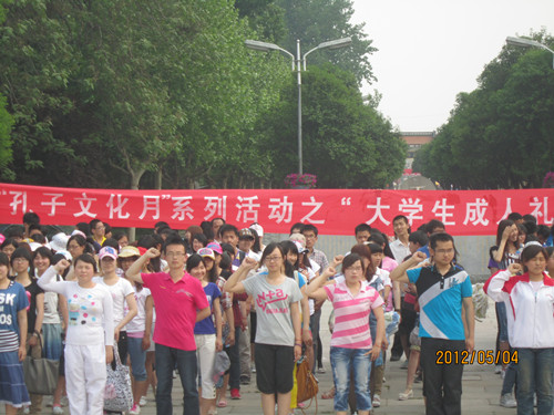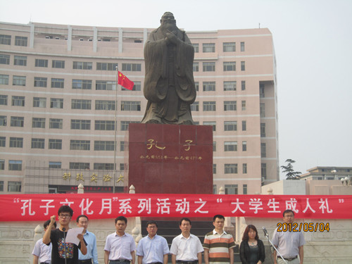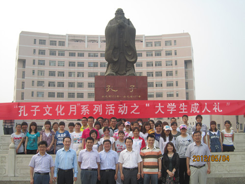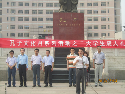 正值五四青年节,由足球直播515官网 洙泗学社举办的“孔子文化月”系列活动之大学生成人礼于孔子文化广场成功举办。我校学生工作部部长王方立、党委宣传部部长宋德昭、团委书记张隆海,足球直播515官网 党总支书记尹明法、院长助理周海生、团总支书记王建阳、辅导员李春玲老师出席了本次活动,足球直播515官网 党总支副书记王明科主持活动。