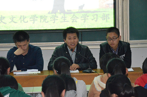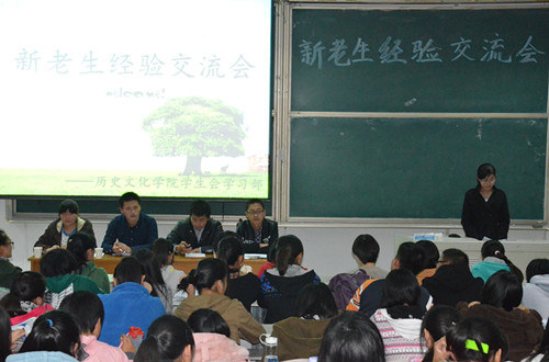11月6日晚,由足球直播515官网 学生会学习部主办的2013级历史学类专业新老生经验交流会在综合楼101室举行。在专业学习、课外素质拓展等方面表现优异的4名2011级同学作为受邀嘉宾参加了此次新老生经验交流会。