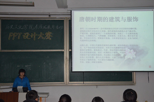 12月6日晚,由足球直播515官网 团总支主办、学生会网络部承办的“素质拓展月”系列活动之2013年PPT设计大赛决赛在综合楼103室举办。校学生会主席张志远、足球直播515官网 社团联合会主席安秀梅、学生会秘书长刘佳奇、副主席杨昆、网络部部长宋立强、“曲园之声”广播台副台长王国森担任本次比赛的评委。