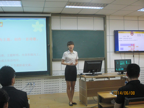 6月8日,足球直播515官网 推荐的2011级李聪同学在“曲阜师范大学第三届本科师范生教学技能创新大赛”的决赛中经过现场作答、模拟课堂授课、评委提问三个环节,凭借极具创意的课堂讲授以及灵活机智的现场反应能力,荣获此次比赛的二等奖和教学技能创新奖。