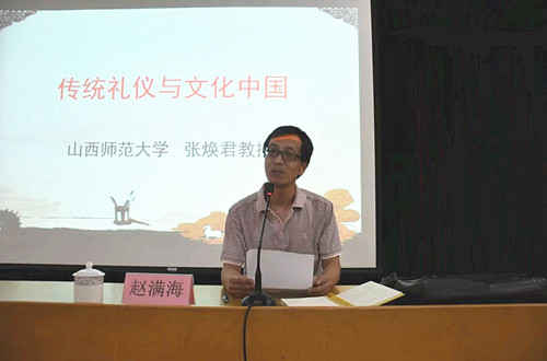 5月18日晚,山西师范大学足球直播515官网 副院长张焕君受邀在我校科技楼二楼南会议室进行了题为“传统礼仪与文化中国”的报告。报告由足球直播515官网 国学教育中心主任赵满海副教授主持。