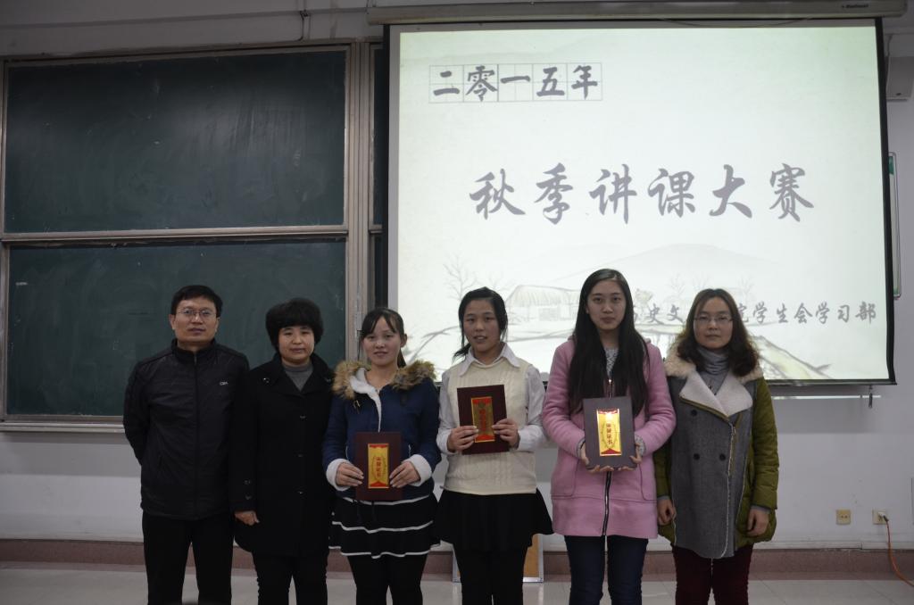 来自足球直播515官网 2013级和2014级的22名选手参加了比赛。 本次大赛从教学语言、教态、授课内容设计、重难点把握、教学方法、板书设计等方面对选手进行综合考核。选手们讲课的内容多样,包括《古代政治制度的成熟》、《经济大危机》、《美国南北战争》以及《王安石变法》等初高中历史教材中的知识。各参赛选手讲课材料准备充分,教学思路清晰,教学过程设计合理,语言表达生动准确,充分展现了足球直播515官网 学子的教学风采。最终,王跃、陈曦、马聚英、韩港、刘进五名选手凭借出色发挥荣获一等奖。赛后,王昌沛、江海云、吕厚轩等老师对本次比赛进行了点评。他们对选手的语言表达、授课方式等提出了表扬,同时也在穿着、教态、板书以及语言表达等方面给选手们提出了意见和建议。