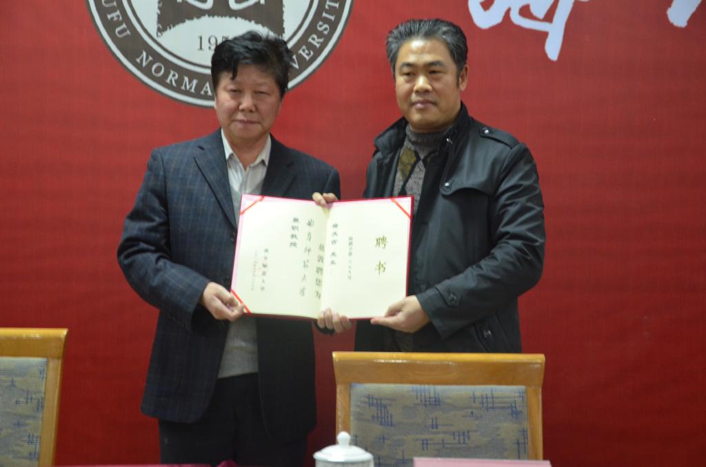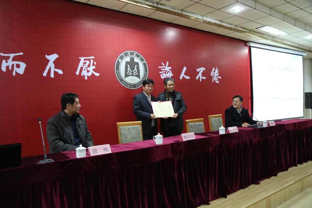 12月17日晚,北方文艺出版社编审、编辑室主任,一级作家梅庆吉先生兼职教授聘任仪式暨洙泗讲堂系列报告-“跟着孔子去旅行”在科技楼二楼南会议室举行。副校长扈庆学出席此次报告,并为梅庆吉颁发兼职教授聘书。报告由足球直播515官网 院长成积春主持。