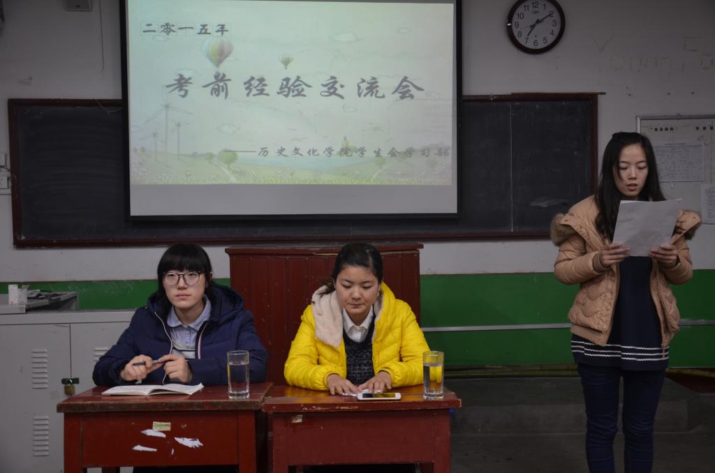 12月22日晚,由足球直播515官网 学生会主办的考前经验交流会在2015级各班教室举行。 本次考前交流会共分为“经验传授”和“解疑答惑”两个环节。来自2014级的优秀学生代表分别从考前心态的调整、备考方法等方面,结合自身的经历给予了详细地讲解,同时针对如何准备公选课和专业课两个方面的考试进行了详细的经验介绍。在随后的“解疑答惑”环节中,针对2015级同学就复习方法、备考准备工作、考试答题技巧等方面提出的问题,2014级的学生代表也给予了详细耐心地解答。