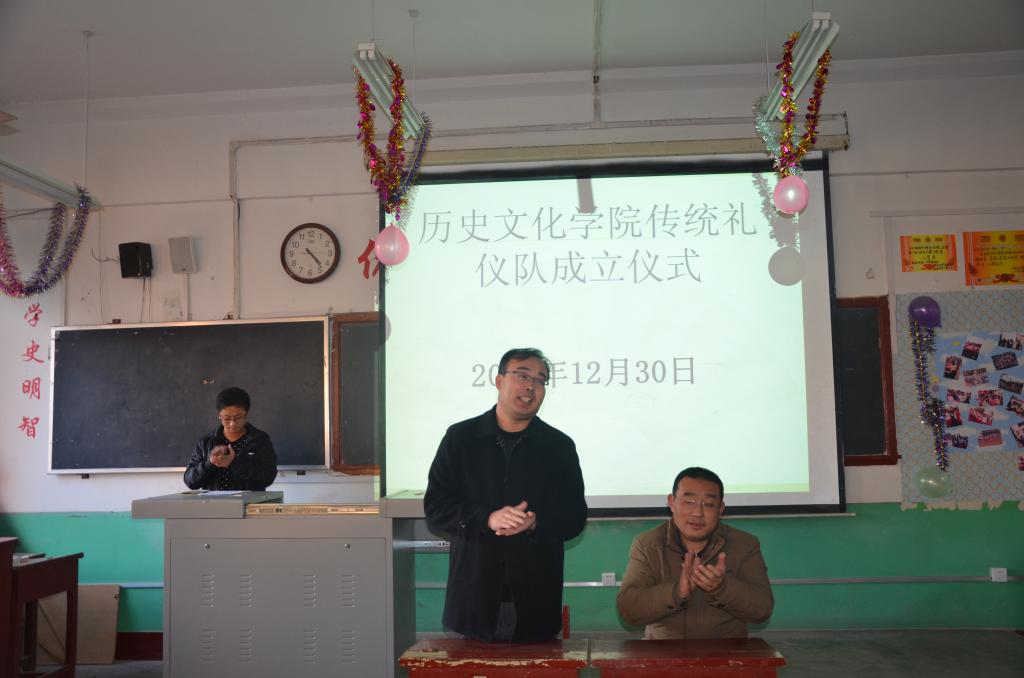 12月30日,足球直播515官网 传统礼仪队成立仪式在文史楼411室举行。团总支书记王建阳、骆明老师出席仪式。