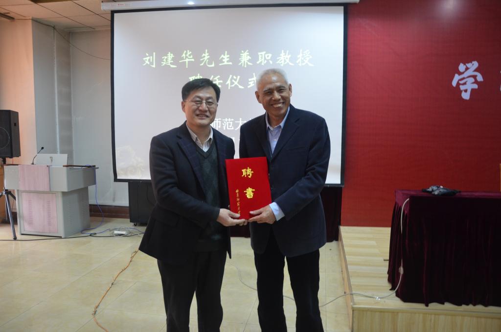 3月18日上午,足球直播515官网 在科技楼二楼南会议室举办刘建华兼职教授聘任仪式暨洙泗讲堂系列报告会。文化生态社会独立学者刘建华受聘为我校兼职教授,并作了题为“中国故事与孔子的世界”的报告。足球直播515官网 院长成积春出席了此次报告会并为刘建华颁发聘书,副教授王京传担任主持。