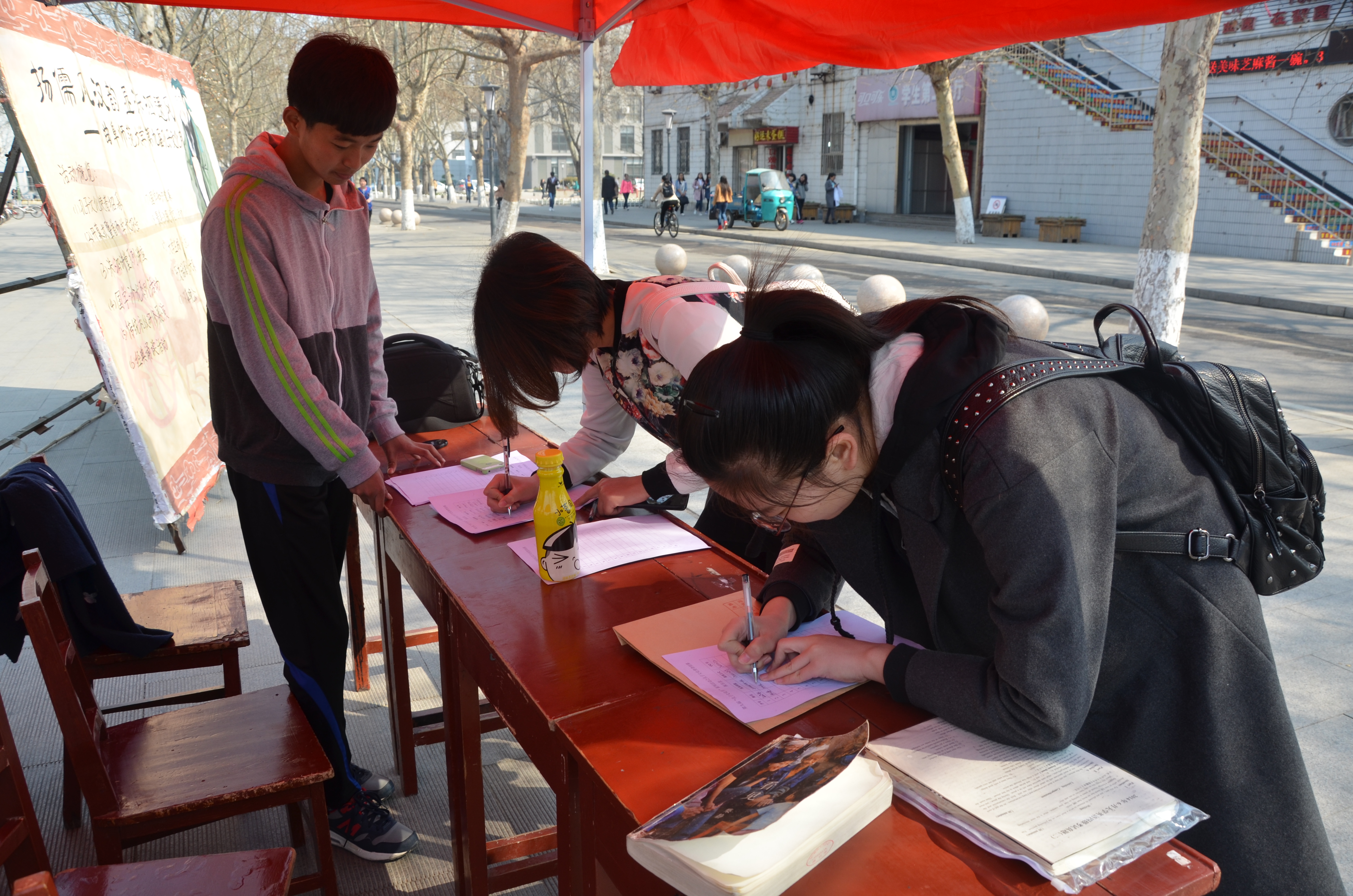 3月26日,于“孔子文化月"开幕之际,足球直播515官网 在大学生活动中心前设立报名处,面向全校招募第九届"孔子文化月"—孔子文化使者。