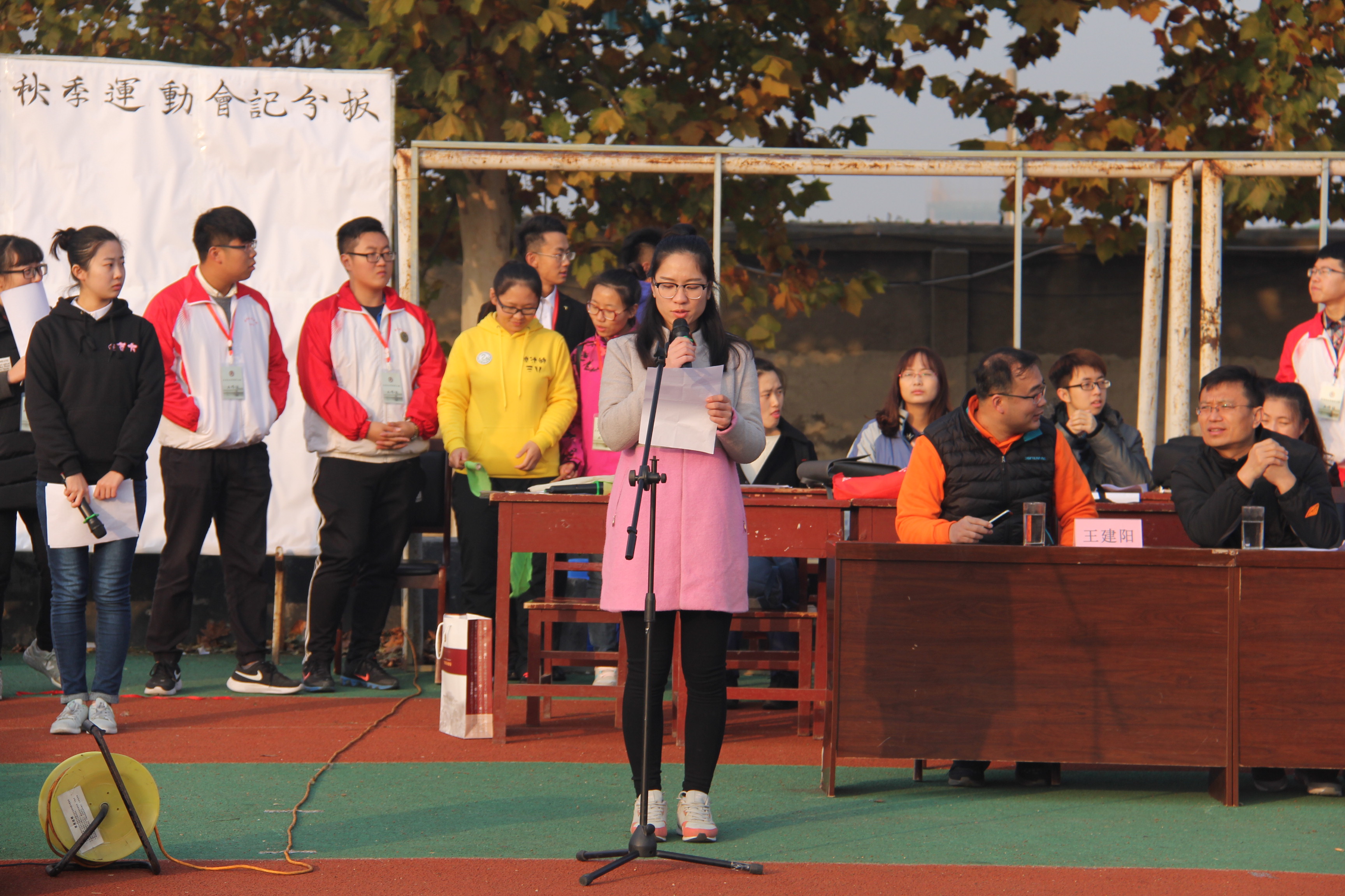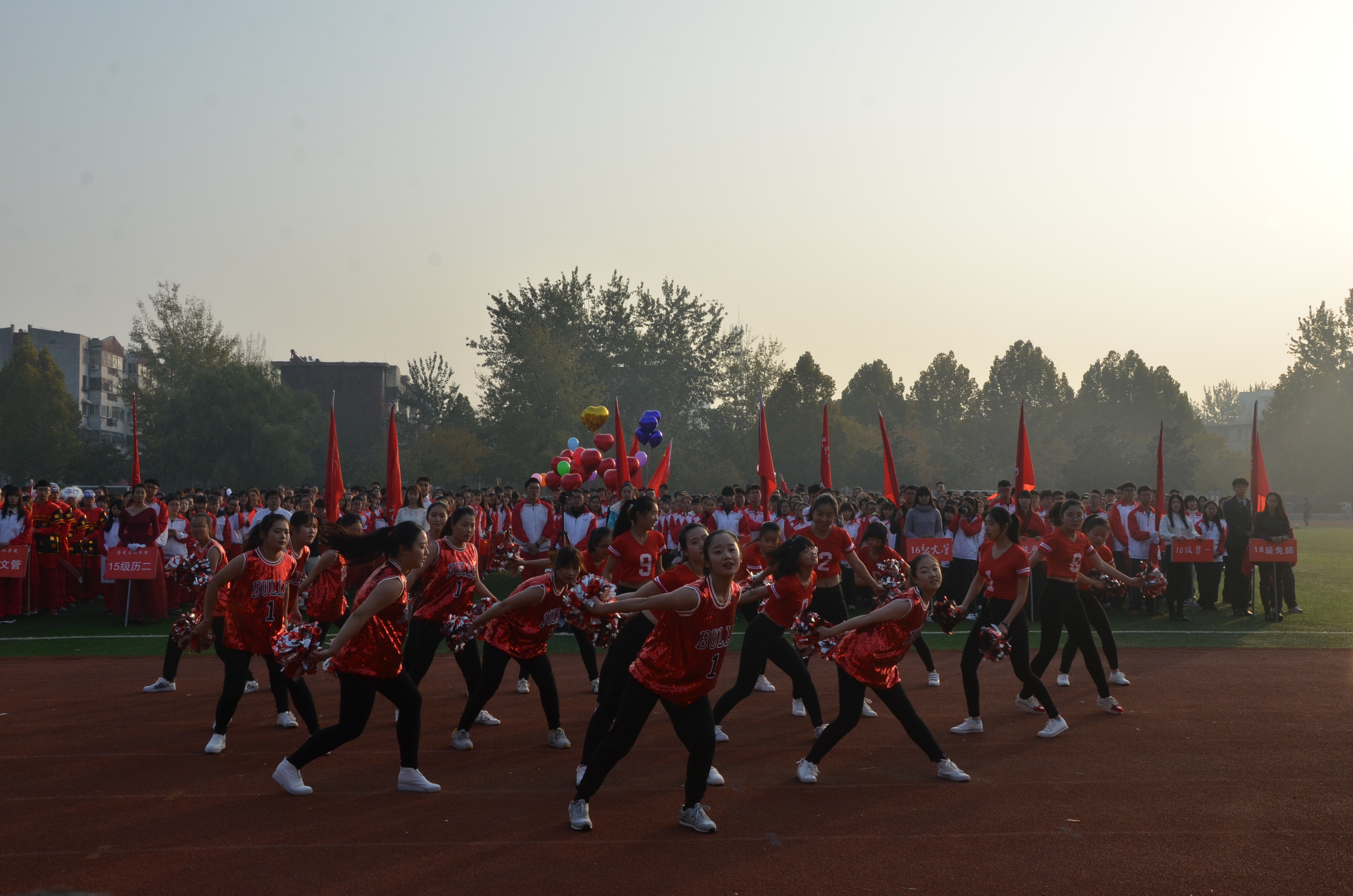 开幕式上,各班方队依次经过主席台前,2016级新生带来的精彩的啦啦操表演,将现场气氛推向高潮。王慕东致开幕词,向参加此次运动会的运动员、裁判员,以及同学们表示感谢,并预祝此次运动会圆满成功。2015级刘晓晨和2014级苑成双分别代表运动员和裁判员进行宣誓。