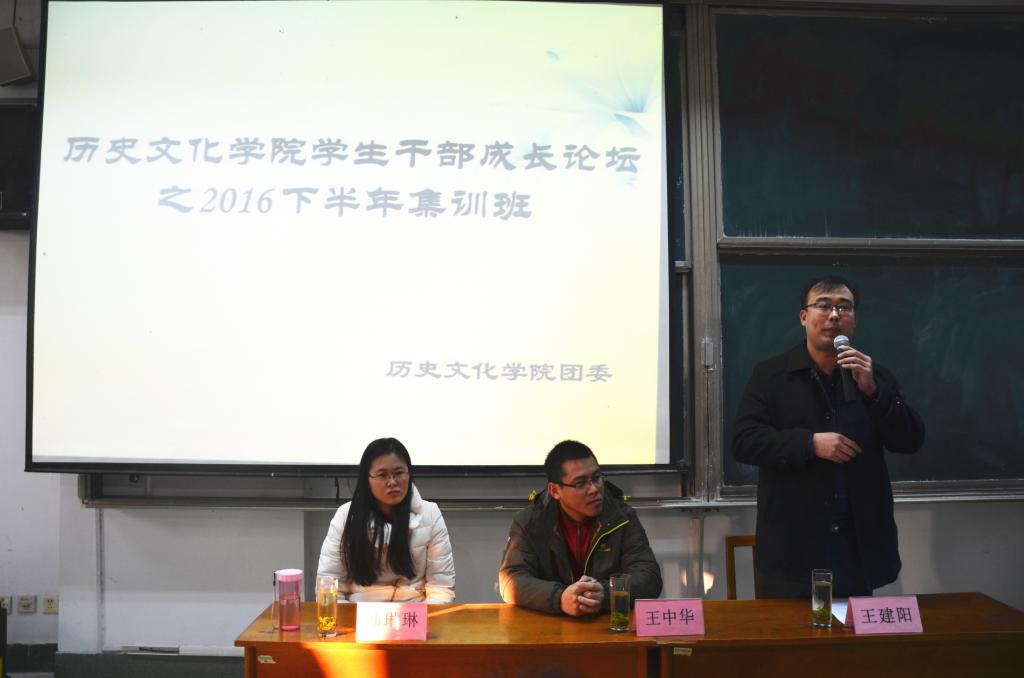12月10日,足球直播515官网 学生干部成长论坛之2016下半年集训班在综合楼501室举办。党委宣传部王中华、党委办公室刘永以及足球直播515官网 团委书记王建阳应邀为学生干部们带来了一系列的精彩讲座。