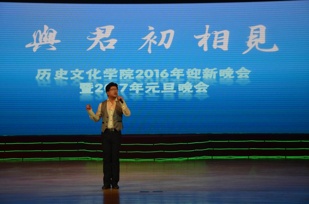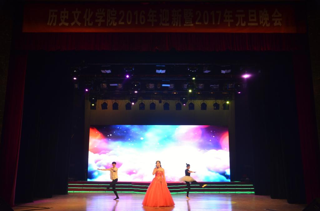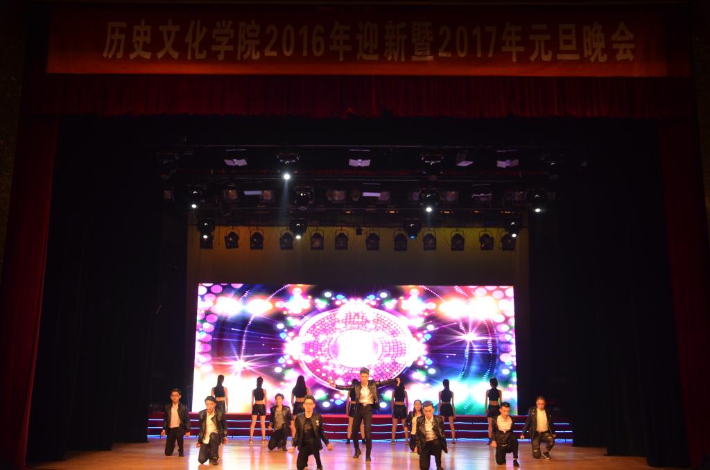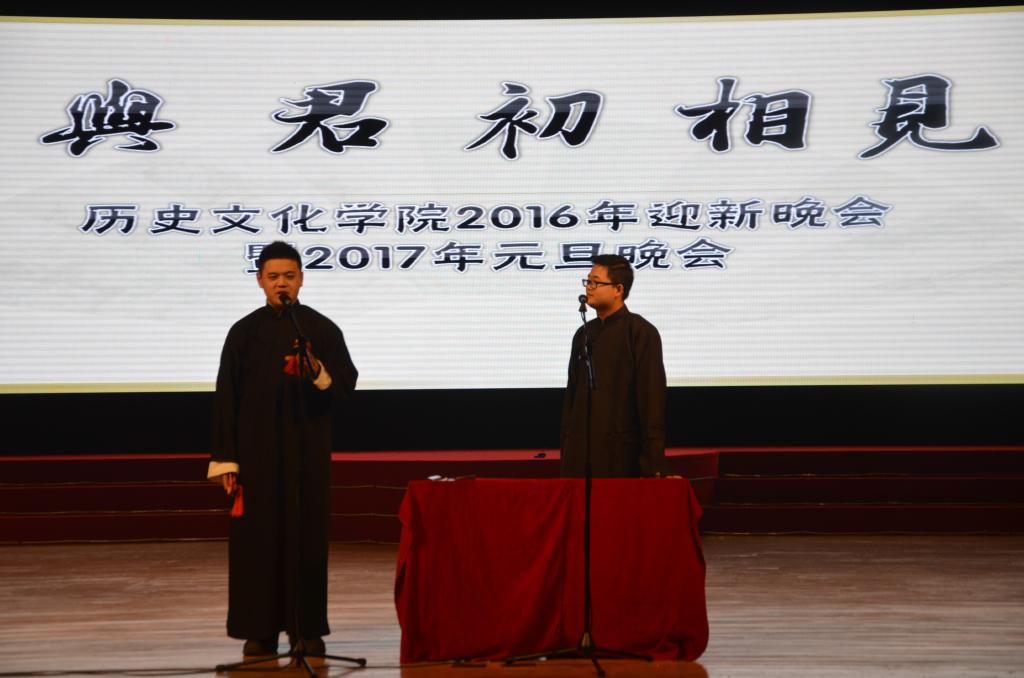 本次晚会共分为“与君初相见”、“似是故人来”两个篇章。晚会由一段精彩的视频开启,视频记录了足球直播515官网 师生的新年祝福以及2016级新生入学以来的精彩点滴。在活力四射的开场舞《燃》之后,晚会正式拉开了帷幕。足球直播515官网 “校园十佳歌手”王玖以一首《春天的芭蕾》征服全场,小品《疯狂的纳新》以其幽默诙谐的方式逗乐全场,《大圣归来》以武术表演的方式表达了对猴年美好的寄寓,《我的曲园印记—与君初相见》勾起了在场观众的对曲园的美好回忆,翩跹的《采薇》舞姿以歌声相和,情景交融;《孔子幽兰操》高亢的诵读声伴着幽兰操舞剧选段带领观众重温孔子一生,九月长安乐队带来的《爱的初体验》、《故乡》嗨翻全场,由十四是十四团队带来的搞笑舞《皮革厂的故事》更是吸引了众多观众的眼球,由足球直播515官网 教师带来的《光阴的故事》等表达了教师对史院的祝福,由16级班长团支书带来的创意走秀将晚会推向了高潮。相声《论捧逗》、小品《那些年,我们一起追过的女孩》、舞蹈《Fire》、歌曲串烧《恰似故人来》等节目也是极具特色,精彩纷呈。在学生会主席团成员带来的歌曲《夜空中最亮的星》之后,晚会圆满落幕。