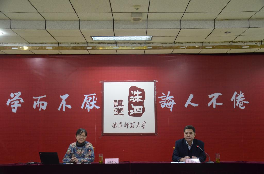 3月9日晚,2017年第二期洙泗讲堂系列报告会在科技楼二楼南会议室举行。廖晓义女士为足球直播515官网 师生作了题为“传统文化与社会工作”的报告。报告由足球直播515官网 党委书记尹明法主持。
