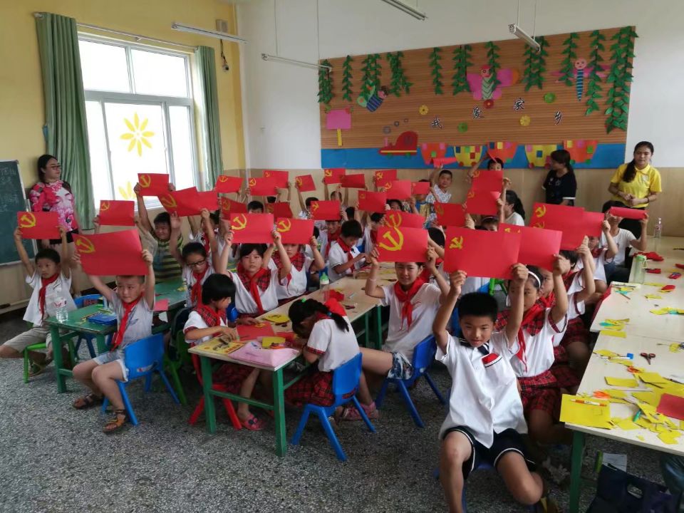 “党史小课堂”的第一堂手工制作课从认识党旗制作党旗开始,志愿者给孩子们详细讲解党旗的构成及内涵,手把手地教孩子们制作党旗。通过边听边做的方式,极大地激发了孩子们对学习党史的热情和积极性。