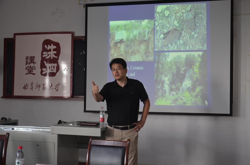 李旻着重向老师和同学们讲解鲁国山川地貌考古勘察的初步成果,借助曲阜地区的主要遗址展现当地历史变迁。随后,李旻耐心地回答了在场同学提出的问题。