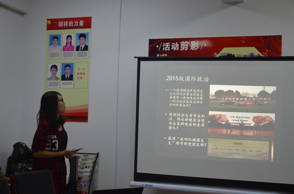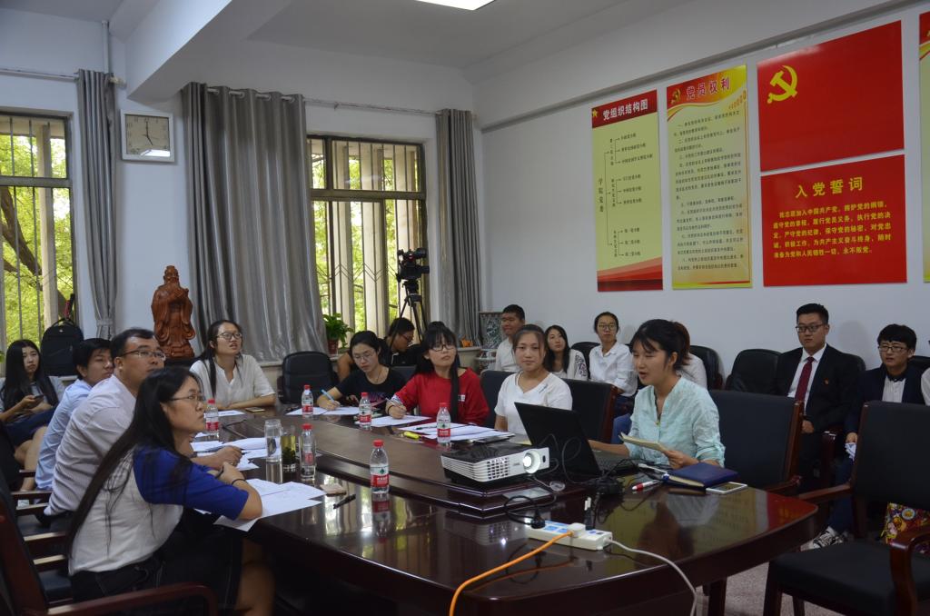 9月22日下午,足球直播515官网 班级文化建设活动评比答辩会在文史楼二楼会议室举行。足球直播515官网 团委书记王建阳、2014级辅导员韩琳琳及2016届学生会主席团成员高子期、阎文莉、井艺蓉、申潜担任评委。2015级与2016级各班代表参加答辩会。