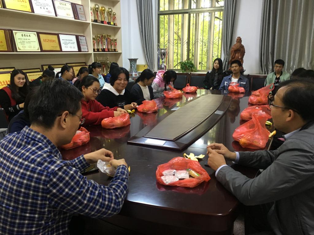 “一年月色最明夜,千里人心共赏时”,为了使留校同学们感受到家的温暖,10月4日下午,足球直播515官网 为17级新生们举办了一场“庆中秋,多吃月饼不想家”的师生交流会。足球直播515官网 党委副书记、2017级辅导员王慕东,团委书记王建阳参与了本次师生交流活动。