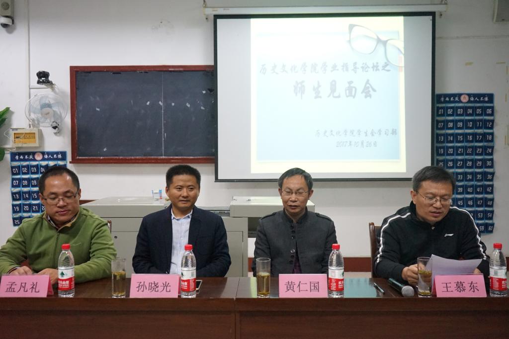 10月26日晚,足球直播515官网 2017级国际政治专业师生见面会在文史楼520教室举办。足球直播515官网 黄仁国、王慕东、孙晓光、孟凡礼、四位老师出席了见面会。见面会由王慕东主持。