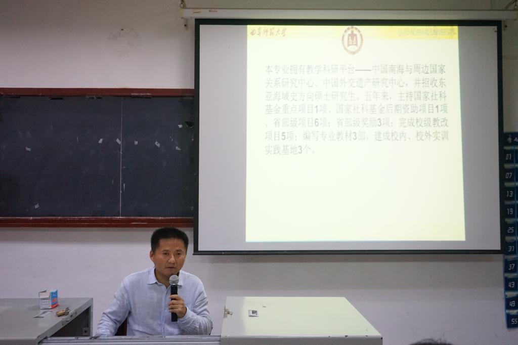 孙晓光向同学们简述了国际政治专业的情况,介绍了国际政治专业的教学建设与改革、师资队伍以及专业实习的情况,并通过视频的方式为同学们未来的就业方向进行指导。各位老师为同学们介绍了学习国际政治专业的方法,希望同学们培养自己的关于国际政治的兴趣爱好,提升自己的学习能力。最后,老师们对同学们提出的问题做出了详细的解答。
