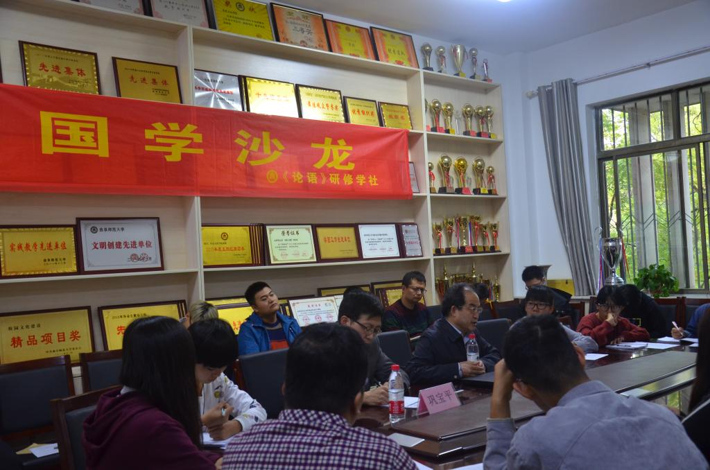 10月28日下午,由足球直播515官网 《论语》研修学社承办的国学沙龙系列活动在文史楼二楼会议室举办。赵法生教授为大家作了题为“谈《论语》的内在脉络与当下实践”的讲座,《论语》研修学社成员以及我校部分师生参加讲座,讲座由足球直播515官网 巩宝平老师主持。