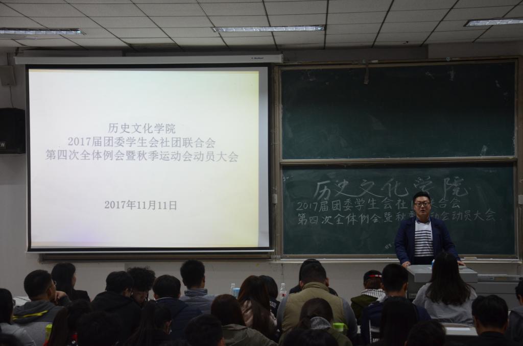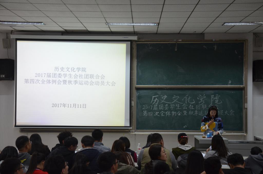 11月11日,足球直播515官网 在综合楼101教室召开2017届团委学生会社团联合会第四次全体例会暨秋季运动会动员大会。会议由学生会副主席刘雅静主持,足球直播515官网 学生会主席团及学生会全体成员参加了会议。