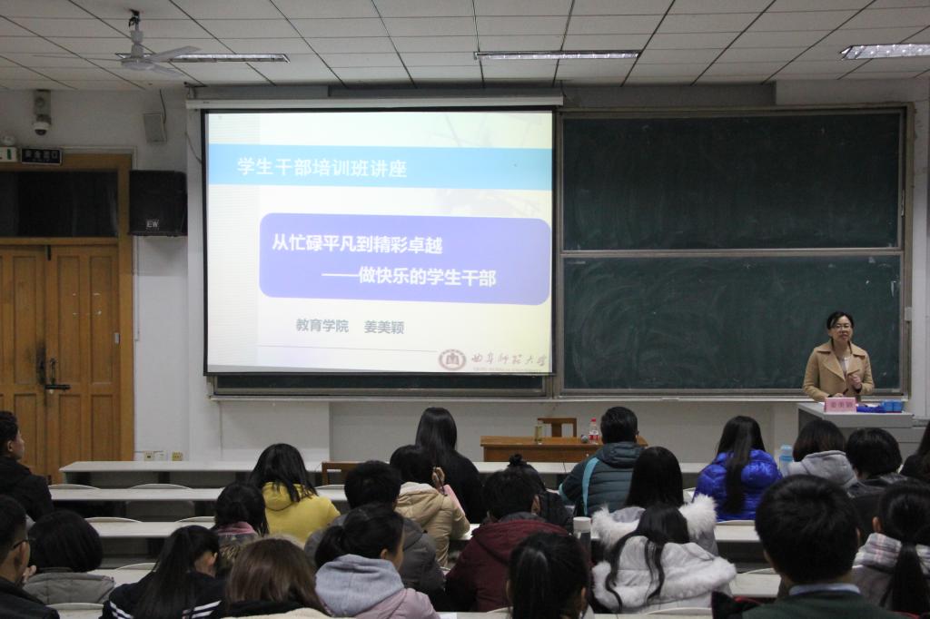 姜美颖通过讲解“为什么要谈快乐”、“如何做到快乐”、“精彩卓越的技巧”三个专题,从人际交往、学习竞争、工作绩效等方面分析了学生工作的利与弊,并指出了学生干部所扮演的角色和发挥的重要作用。同时姜美颖根据自身经历,向同学们提出人际关系、工作目的、工作心态等方面的建议。最后,姜美颖希望同学们修正自我,高效工作,最大限度的提高自己的能力做快乐的学生干部。