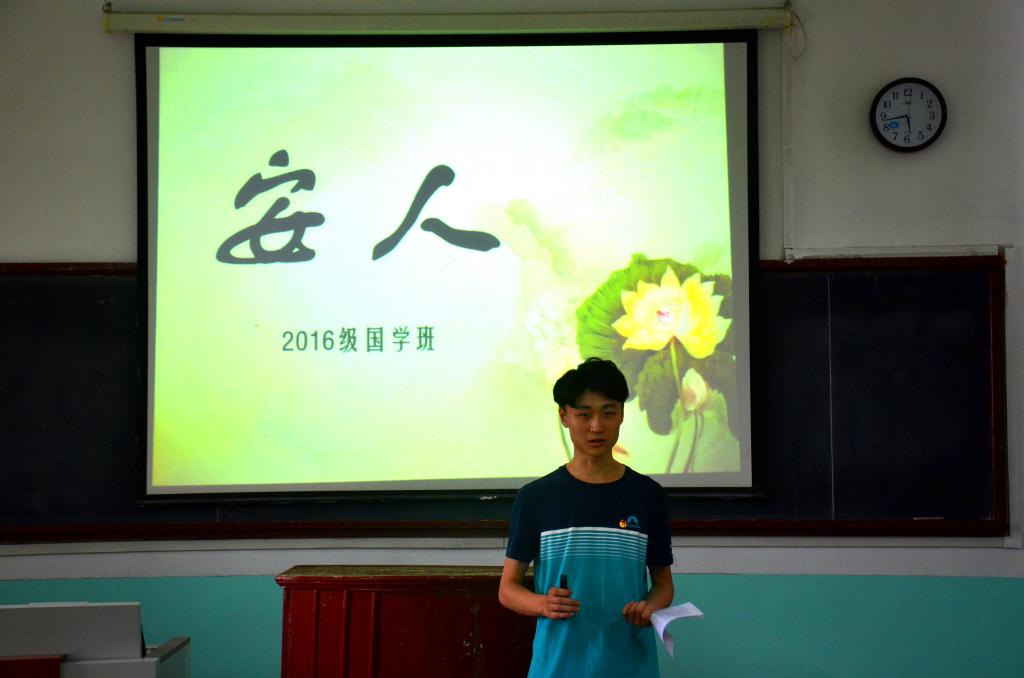为了积极响应团中央的号召,全面开展“青年大学习”行动,6月21日下午,足球直播515官网 2016级国学班举办“学以成人”主题团会活动。校团委书记宋国栋,足球直播515官网 团委书记王建阳,2014级国学班团支书高子期出席活动。活动由2016级国学班团支书潘忆萱主持。