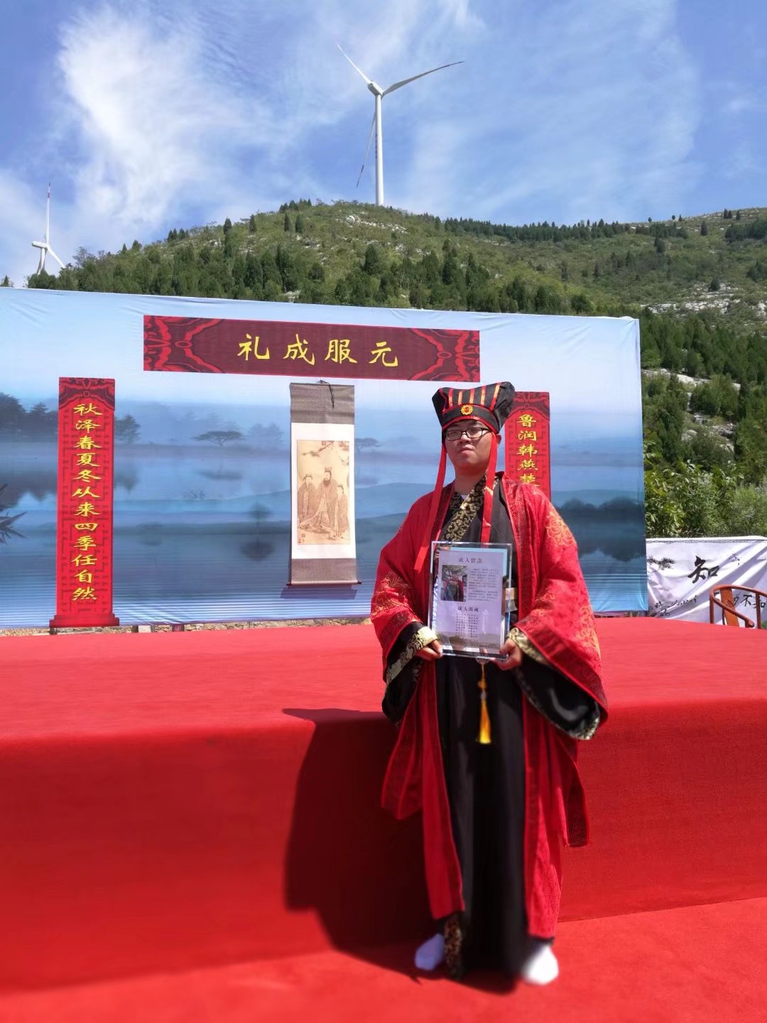 8月26日,由足球直播515官网 大学生传统礼仪研修中心指导的韩燕楚同学的“成人礼”仪式在泗水二龙山成功举行。韩燕楚父母亲朋长辈到场观礼。
